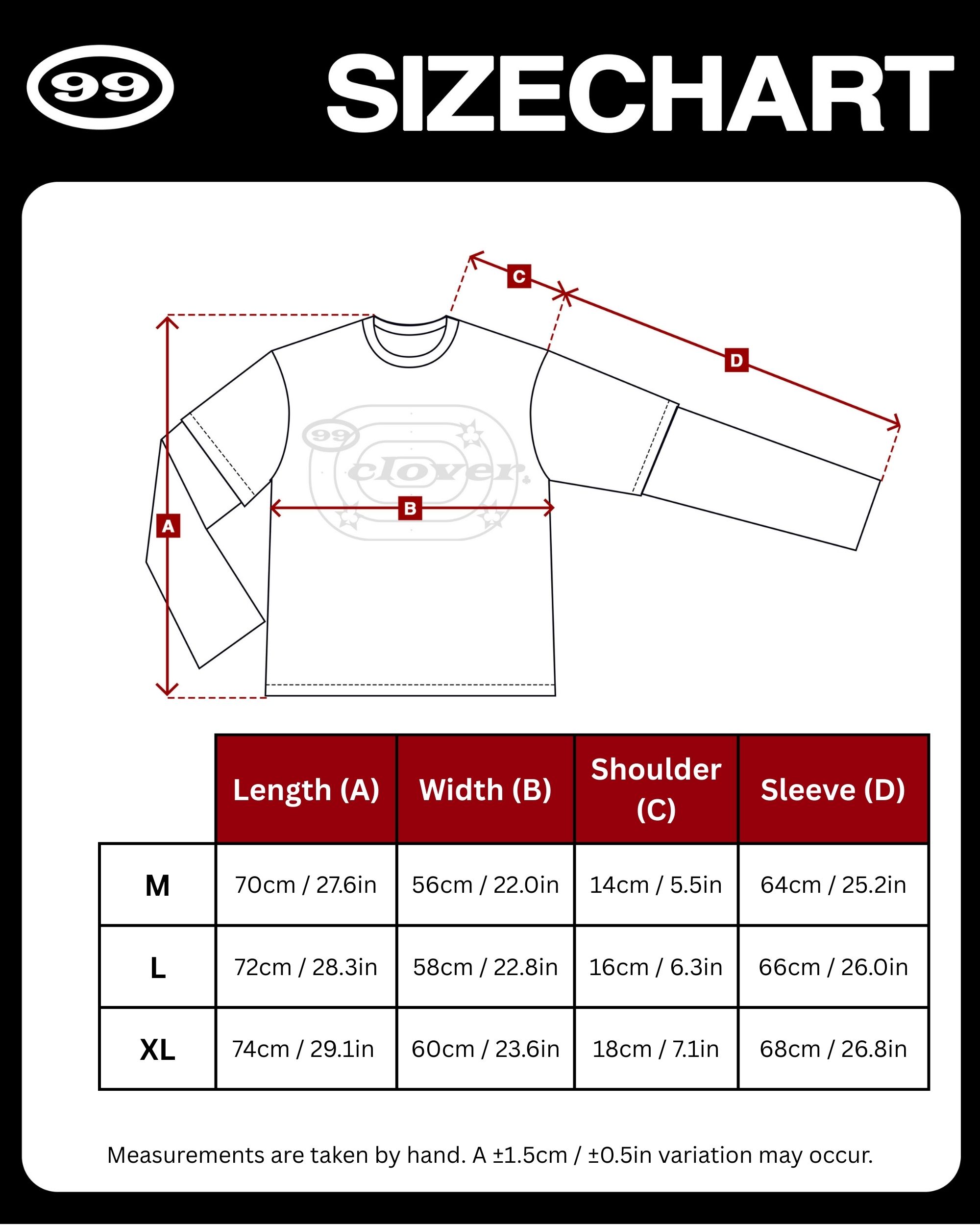 • Male model: 185 cm and wears size L